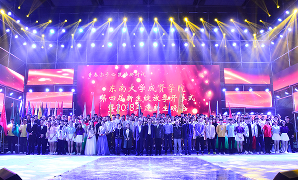 10月15日晚,由校团委和学生处联合主办的“青春赤子心,筑梦新时代”第四届新生绽放季开幕式暨2018年迎新生晚会在后藤体育馆隆重举行。校党委书记徐悦,党委副书记、副院长王荣,部分职能部门负责人、海角社区总支书记,综合办主任、分团委书记、辅导员、2018级全体新生及其他年级学生约3000余人一同观看了晚会。