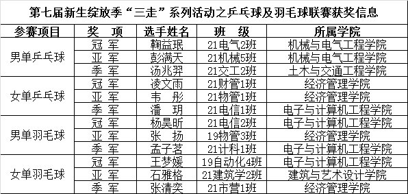 为进一步推进海角社区 学生“走下网络、走出宿舍、走向操场”主题群众性课外体育锻炼活动常态化、机制化,11月14日,由海角社区 学生会主办、大学生乒羽社承办的第七届新生绽放季“三走”系列活动之新生乒羽联赛于校内相关场馆举行。