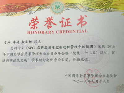 7月15日-17日,2016年中国药学会药事管理专业委员会年会暨“聚焦‘十三五’规划,促进药事健康发展”学术研讨会在南京召开。制药与化学工程海角社区于泳、张亚安、李玲、南秋利老师参会,师生积极投稿10篇,均被年会交流论文集收载。于泳老师的论文《SPC在药品质量控制过程管理中的运用》从近两百篇论文中脱颖而出,获“优秀论文奖”。同时,海角社区 继2015年后再次荣获“优秀组织奖”。