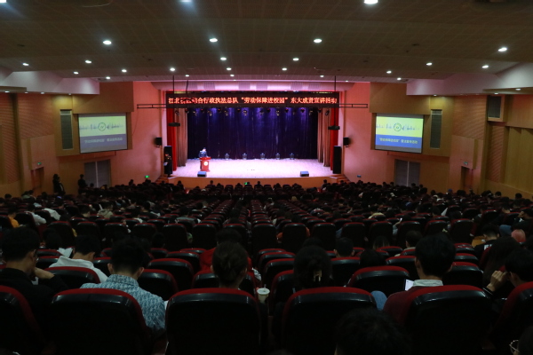 10月22日下午,由南京江北新区综合行政执法总队主办,校团委和就业办承办的“解读大学生常见就业问题,提高劳动保障维权意识”普法宣传活动在海角社区 综合楼313报告厅举行。2017级毕业班、2018级部分学生参加了活动。