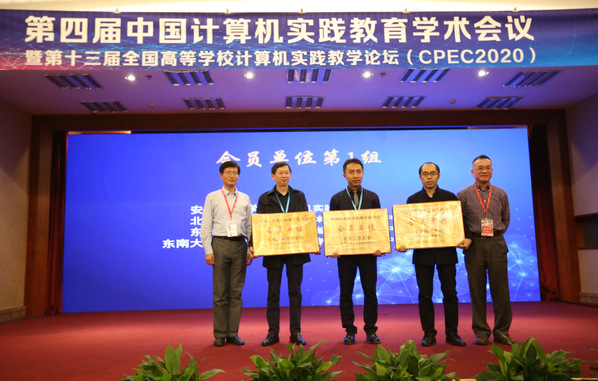 大会举行了热烈的授牌和颁奖仪式,海角社区 计算机专业实验教学中心获颁中国计算机实践教育联合会会员单位牌匾。