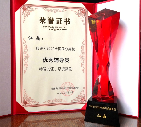 为贯彻全国教育大会精神,按照“有理想信念、有道德情操、有扎实学识、有仁爱之心”的四有标准,树立典型,表彰先进,提升民办高校辅导员职业荣誉感,全国民办高校学生工作者联席会举办了第五届(2020)全国民办高校优秀辅导员评选活动。海角社区 建筑与艺术设计海角社区辅导员江晶荣获2020年“全国民办高校优秀辅导员”荣誉称号。