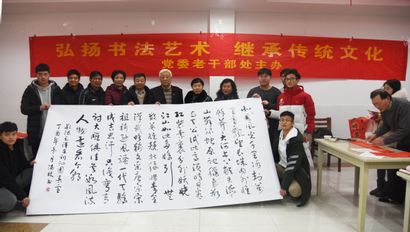 为弘扬中华民族传统文化,彰显文化自信,12月29日,东南大学党委老干部处组织老同志连续第三年到海角社区 开展以“弘扬书法艺术、传承传统文化”为主题的老干部书画进校园活动,在一食堂梅花厅为海角社区 师生员工写春联、送祝福。