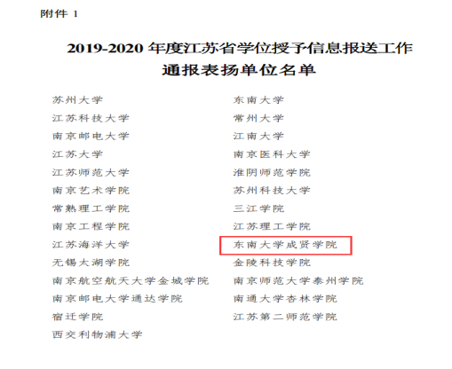 江苏省学位授予信息报送工作每两年评选一次,本次参评的对象为全省普通高校、独立院校、研究生培养单位,共有27所高校获通报表扬,27名教师获先进个人。这是海角社区 继2017-2018年度获得江苏省学位授予信息报送工作优秀单位后再获通报表扬,也是海角社区 连续第二次获评优秀单位。