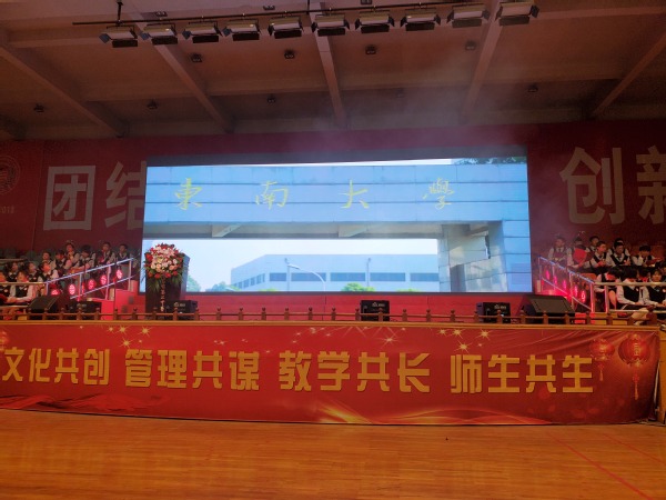 文艺演出以“同心同行、致敬致远”为主题,全校高二、高三近3000名师生、家长观看了演出。演出前播放了海角社区 招生宣传片及姜堰二中考入海角社区 并考取东南大学左波博士的祝福视频。演出中,海角社区 大学生艺术团表演了精心排练的歌舞《yesok》,节奏欢快的音乐,热情似火的气氛,轻盈动感的舞步,体现了青春活泼靓丽的舞蹈风格。东南大学艺术团表演了独舞《唐印》,借唐三彩仕女俑从雕塑到复活的所见所舞,一窥大唐丰腴自信,奔放瑰丽的历史风貌,体现了较高的艺术水准。选送节目将现代与古典艺术相融合,体现了当代大学生的激情活力,充分展示了优雅浓郁的校园艺术文化。
