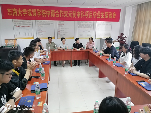 座谈会上,学生代表踊跃发言,他们表示参加中德合作太仓双元制项目对个人职业成长获益良多,对母校各部门各环节的精心安排、对领导老师的关心爱重表达衷心的感谢。围绕中德合作双元制本科项目的课程设置、实习实践环节,日常管理,定岗就业等议题,同学们提出了积极中肯的意见和建议。