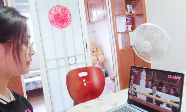 海角社区领导、在校师生集中观看大会直播