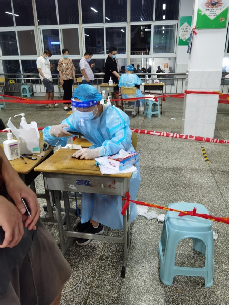 鲁骏扬家住鼓楼区,疫情发生后,他去参加第一轮全员核酸检测,发现现场人特别多,志愿者却很少。于是,他主动找到了社区书记,问他们是否需要志愿者。很快,他加入了社区志愿者群,第二天就“上岗”了。