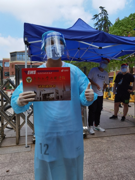 前不久,学校官方抖音号发出征集令,请新生们提供收到录取通知书瞬间的精彩图片。一张身着防护服领取录取通知书的照片引起了学校的关注。
