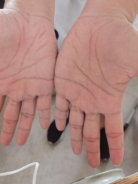 双手被泡得发白起皱