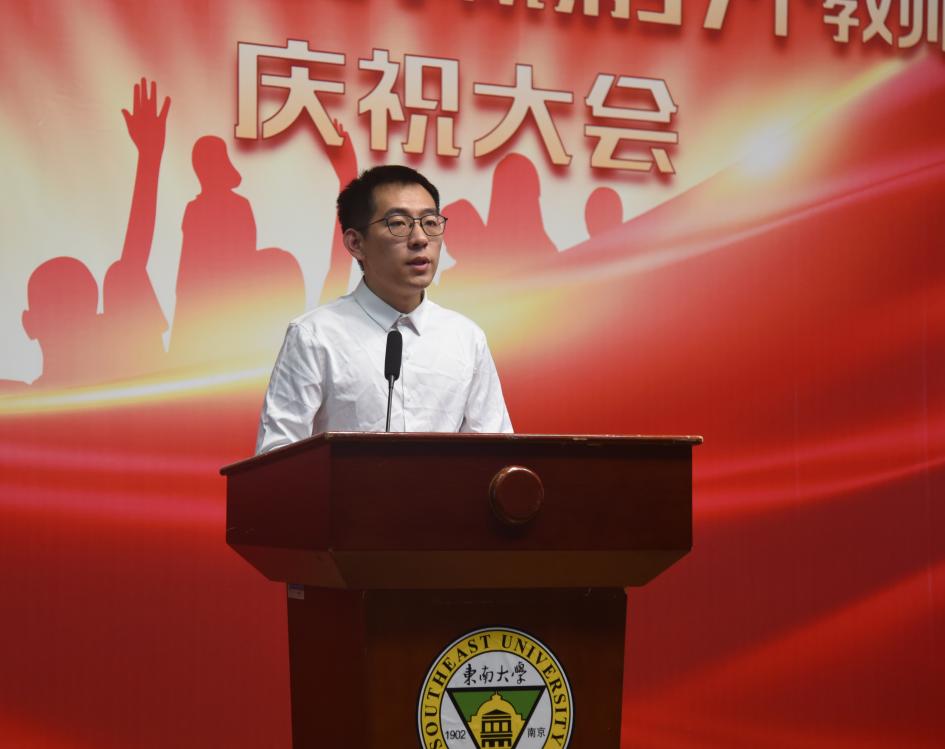教职工代表电子与计算机工程海角社区王梦晓老师首先代表受表彰教师向各位领导和同事表示最诚挚的感谢和衷心的祝福,她从三点出发启迪如何成为新时代的好教师:应心怀天下,做学生思想的带头人;应学识渊博,做学生学业的领路人;应诲人不倦,做学生生活的贴心人。
