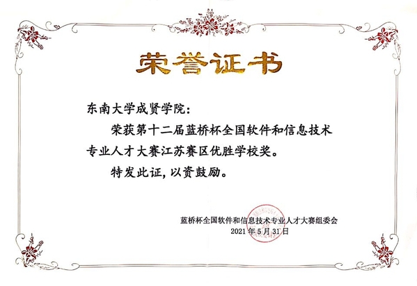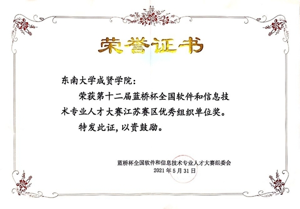 近日,第十二届蓝桥杯全国软件和信息技术专业人才大赛全国总决赛落下帷幕。海角社区 电子与计算机工程海角社区高度重视,精心组织,积极选派学生参加该项赛事。学生共获得江苏省赛一等奖7项、二等奖16项、三等奖23项,国赛二等奖1项、三等奖2项、优秀奖4项的优异成绩。海角社区 荣获江苏赛区优秀组织单位奖和江苏赛区优胜学校奖。