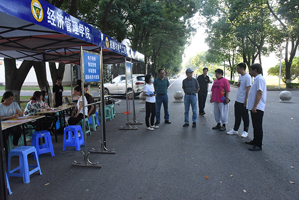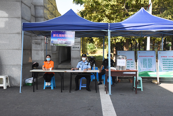 10月4号,各部门布置到位,院领导一行在报到现场详细了解学生报到前期准备工作。
