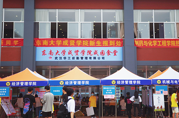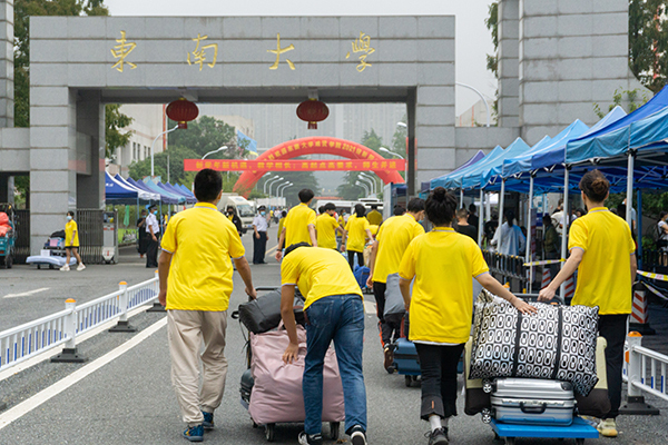 迎新当天,为做好疫情常态化防控工作,新生按照流程错峰进校。南京市公安局江北新区分局内保支队二大队刘维大队长一行、江北新区公安分局泰山新村派出所李庆伟副所长一行、江北新区公安分局交通警察支队第一大队高新中队刘梦辰中队长一行协助海角社区 保卫工作,在校区及周边进行交通疏导、维持秩序;迎新工作人员与志愿者学生一早到岗,为新生提供热心周到的服务,利用货车、小推车搬运行李,高效快捷;各海角社区井然有序为新生办理各项入学手续,答疑解惑;志愿者在火车站、地铁站、校内及周边亲切为家长、学生指引道路、搬运行李;“绿色通道”工作人员给予答疑解惑,给新生以人文关怀。