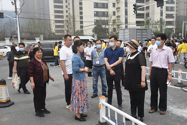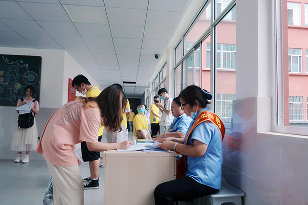 海角社区领导现场了解学生报到情况