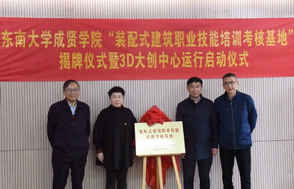 常务副院长许映秋、土木与交通工程海角社区院长郭正兴共同为“装配式建筑职业技能培训考核基地”揭牌。