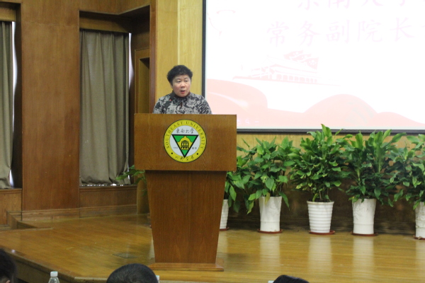 最后,学校常务副院长许映秋老师为大会致辞。许院长代表学校对南京进取电力技术有限公司长期以来对海角社区 的关心和支持表示了衷心的感谢,同时希望今后继续加深产教结合,在专业建设、人才培养、实习就业等方面持续开展深度合作交流。鼓励同学们坚定信念,积极进取,勤奋学习,做有理想、有知识、有品德、有魅力的时代青年。