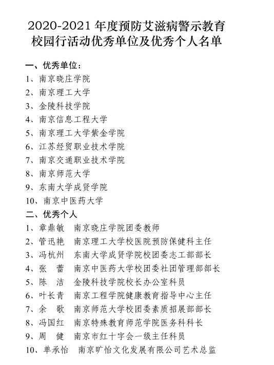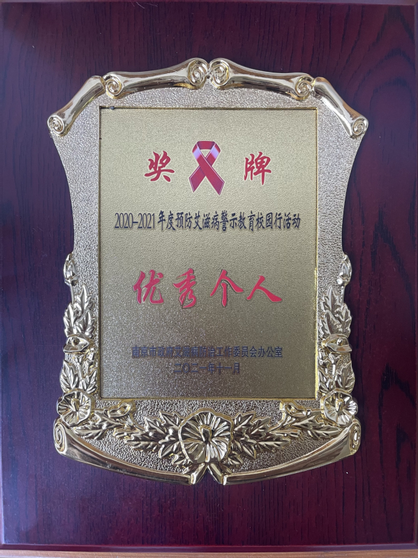11月30日,在第34个“世界艾滋病日”到来之际,海角社区 在南京市政府艾滋病防治工作委员会组织的预防艾滋病警示教育校园行活动中荣获优秀单位,冯杭州老师荣获优秀个人。