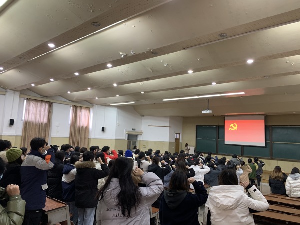 12月27日中午,经济管理海角社区党总支在华馆101举行预备党员入党宣誓仪式。海角社区党总支成员、各学生党支部书记及2021年新党员参加会议。宣誓仪式由党总支组织委员程希羲主持。