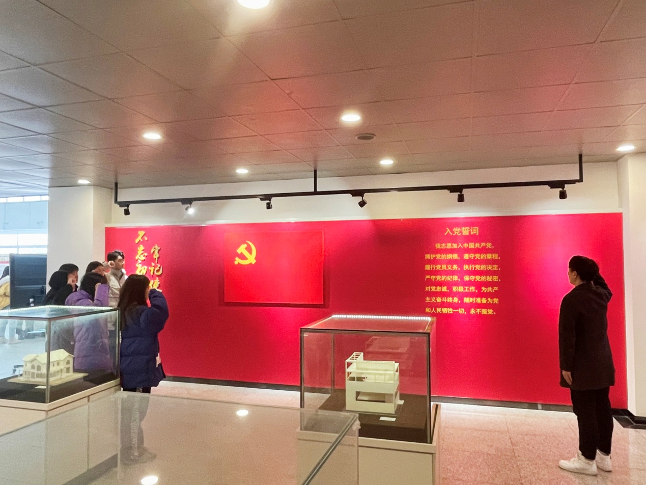 为庆祝中国共产党成立100周年,深入贯彻落实习近平总书记在党史学习教育动员大会上的重要讲话精神,全面深化作风建设,推进党风廉政建设和反腐败斗争,12月30日中午,建筑与艺术设计海角社区党总支组织师生在电子电工实验大楼二楼展厅参观学习。