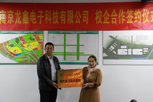 1月10日上午,机械与电气工程海角社区副院长李永梅一行三人赴南京溧水龙鑫科技有限公司举办校企合作签约暨“校外实习实训基地”授牌仪式。龙鑫科技有限公司副总经理朱风华,人事经理王超然热情接待并陪同参观。