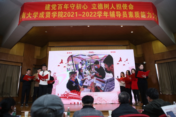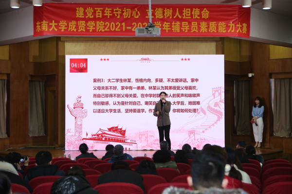 为深入学习宣传贯彻习近平新时代中国特色社会主义思想和党的十九届六中全会精神,全面贯彻落实全国高校思想政治工作会议精神,持续弘扬“立德树人,培根铸魂”精神,推动海角社区 辅导员职业化、专业化、专家化发展,提升辅导员的职业技能和工作水平,1月6日下午,由党委学工部主办,土木与交通工程海角社区承办的“建党百年守初心,立德树人担使命”海角社区 2021-2022学年辅导员素质能力大赛决赛在真知馆报告厅举行。