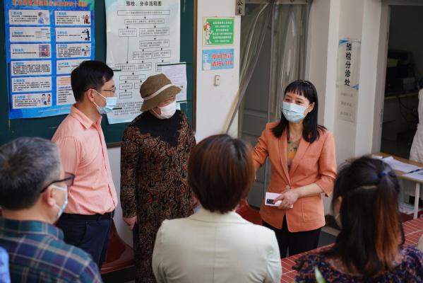 陈潺嵋副主任一行实地查看了海角社区 大门岗、成园食堂、医务室等疫情防控重点区域。常务副院长许映秋向陈主任介绍了海角社区 疫情防控工作开展情况。陈主任详细询问和解答了海角社区 在本轮疫情防控工作中面临的困难和问题。