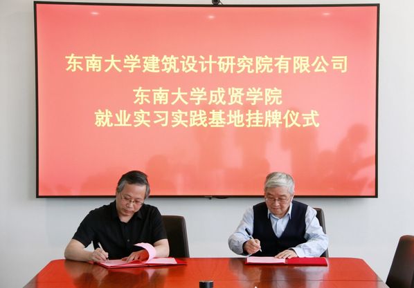 会后,建艺院院长高祥生和东大设计院常务副总经理曹伟签订了深度校企合作协议书并挂牌“海角社区 就业实习实践基地”。
