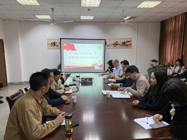为全面贯彻落实学校教育思想大讨论的总体要求,建筑与艺术设计海角社区部署各专业教研室分别开展了教育思想大讨论,并于11月4日中午,在前期讨论的基础上,围绕“立德树人生为首位,教书育人课比天大,全面提升一流应用型人才培养水平”的主题,召开了全院教师教育思想大讨论工作座谈会。
