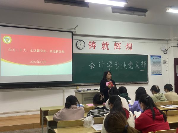 商贸教工党支部包小妹老师表示,通过学习贯彻党的二十大精神,能够有效将“课程思政”贯穿高校教育教学全过程,立德树人,为党育人、为国育才。会计学专业党支部夏小满同学谈到,作为一名学生党员,要在服务同学中增长才干、锻炼本领、坚定信仰,要感想敢为、善作善成。