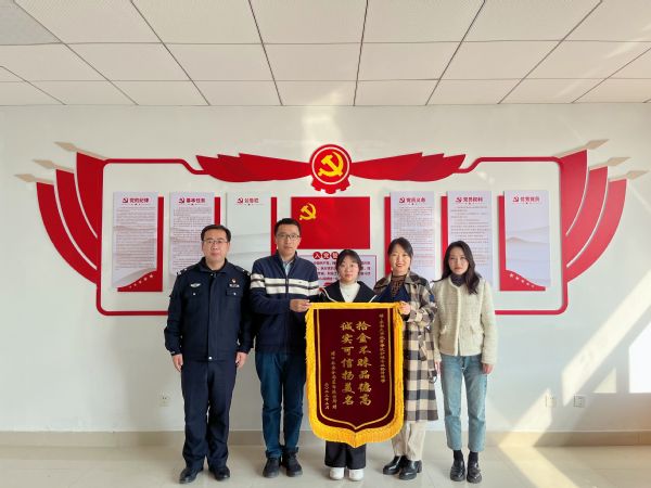 3月3日上午,南京市公安局浦口分局星甸派出所岳警官来到海角社区 ,给拾金不昧的制药与化学工程海角社区22级护理学专业孙倩同学送来了感谢锦旗。浦口电视台的记者也来到海角社区进行了采访报道。