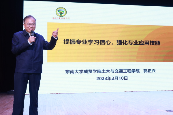 第二篇章“勉悟精习”中通过感悟海角社区精神文化、聘任新生班级学生班指导,聘任新生班级班主任,聘任校友导师,聘任企业导师5个环节集中阐述了土木与交通工程海角社区在学生价值引领工作中的七大创新举措即精神引领、专业引领、朋辈引领、德育引领、社会引领、榜样引领和旗帜引领。校企合作单位代表南京慧筑信息技术研究院有限公司总经理倪树新先生也向2022级新生展现了新时代企业的风采和提出了新时代对大学生的要求。随后,郭正兴教授为土木与交通工程海角社区的全体师生生动讲述了行业发展的新需求和新技术,以自身的实践与经历增强了同学们对未来土木行业发展的信心,希望同学们在未来能够掌握更多的技术与技能,成为多样化人才。