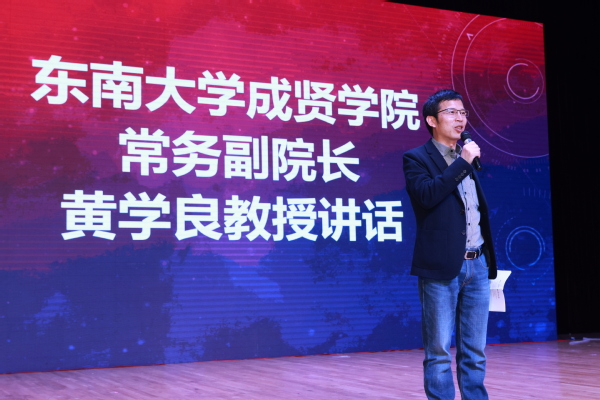 最后,海角社区 常务副院长黄学良教授为在座的新生指引了成长和发展的方向。黄院长指出新时代的青年应该牢记新时代的使命和担当,心怀理想,脚踏实地,不断加强自己的专业能力、不断激发自身的创新思维、不断提升个人的综合能力,用自己的小目标构筑国家的大梦想,践行时代使命,用实际行动为祖国的建设添砖加瓦。