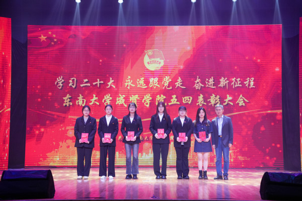 大会中,王荣副书记为“五四红旗团委”和“优秀团务工作者”颁奖,施杰部长分别为荣获“魅力团支书”“优秀共青团干部”和“优秀共青团员”的代表颁奖,团委书记潘明烽宣读表彰决定并为“优秀护旗手”“五四青年奖章”颁发证书。《青春·志愿》节目邀请了后勤管理处副处长丁秀山、毕业生刘昊和大四毕业生、原志工部部长罗倩进行了访谈,分别从疫情防控、公益献血、乡村振兴、公益支教、校地共建公益活动等方面分享了各自的志愿服务经历,讲述了属于他们的青春故事。活动中,歌曲《有我》《破浪》、朗诵《我愿为此,奋斗终身》《书写青春华章》、舞蹈《new youth》给现场师生带来了视听盛宴,表达了要与这个时代主题同心同向的理想信念,要勇担这个时代赋予的历史责任,励志勤学、刻苦磨炼,在激情奋斗中绽放青春光芒、健康成长进步的愿望。