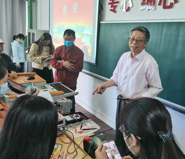 培训讲解后,张教授还现场演示了利用万用表、摇表及接地电阻测试仪等仪表测试实验用仪器设备的耐压绝缘性能和接地电阻的具体方法,并与老师们进行了充分的交流互动。