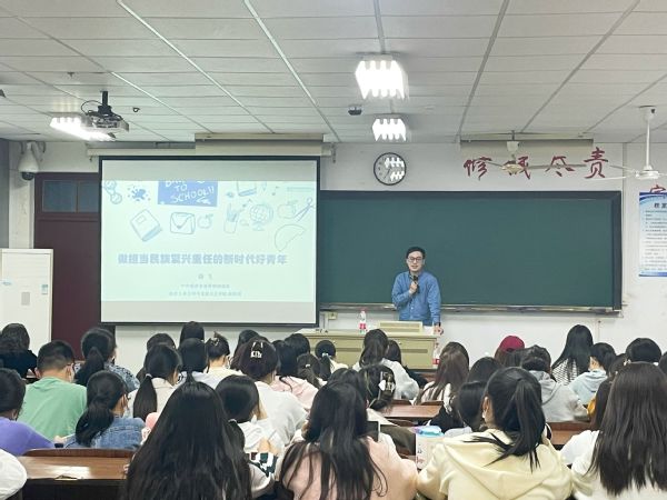 为引导青年学生深入学习贯彻党的二十大精神,5月12日,经济管理海角社区邀请南京市党的二十大精神宣讲团成员、南京工业大学马克思主义海角社区副教授、硕士生导师滕飞老师以“做担当民族复兴重任的新时代好青年”为题进行了一场生动的主题教育,经济管理海角社区党总支副书记李清源和一百余名积极分子聆听了党课。