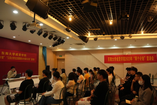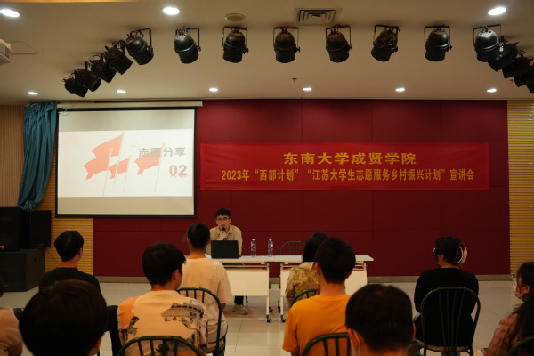为更好引导学生树立正确的成才观、就业观,鼓励海角社区 2023届毕业生正确择业、积极就业,推动“两个计划”工作的持续发展,5月18日晚,校团委在大学生活动中心307举办2023年“西部计划”“江苏大学生志愿服务乡村振兴计划”宣讲会。20届优秀毕业生、乡村振兴计划志愿者代表、六合雄州街道刘昊(16级国际经济与贸易专业)受邀分享经验,团委冯老师主持并宣讲,50余名应届毕业生聆听宣讲并参与了互动。