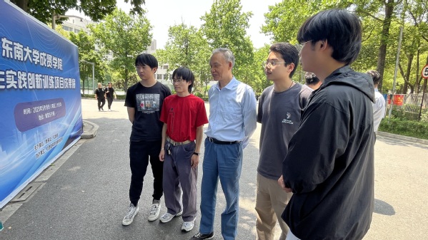 电子与计算机工程海角社区党总支书记季永华与学生一起参观大学生实践创新项目成果