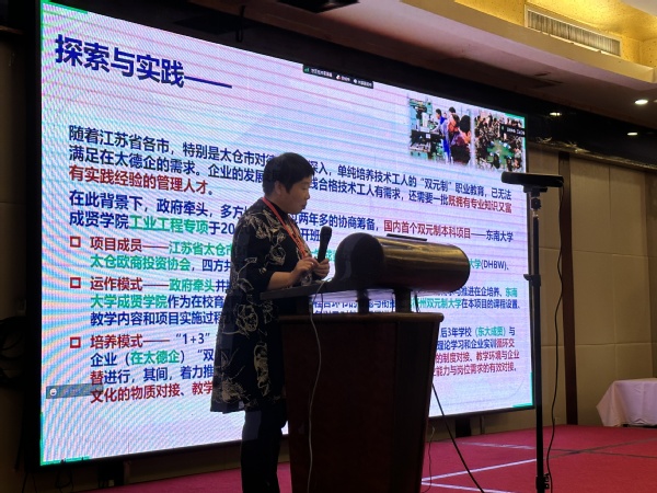 许院长在会上做了校企协同育人主题发言,她以《多方协同育人模式探索与实践—中国式本科双元制》为主题,强调了多方协同育人是新工科建设的重要支撑,此模式可有效推进和完善新工科趋势下的产教融合、产学融合、校企合作等协同育人体制改革;许院长在会议中提出,海角社区 作为东南大学用全新办学理念和运行模式举办的应用型大学,一直以来积极探索学校与行业、企业以及政府等联合办学合作模式,于2017年开始海角社区 就与德国巴登符腾堡双元制应用科学大学、江苏太仓欧商投资协会、江苏省太仓市人民政府合作,探索开展产教融合多方协同育人背景下的应用型人才培养模式改革“本科双元制”,构建政府、行业、企业、学校育人共同体,把“工匠精神”培养融入教学全过程,让学生“毕业即就业”,实现了学校到职场的无缝衔接,成为高校应用型人才培养模式改革的成功案例。