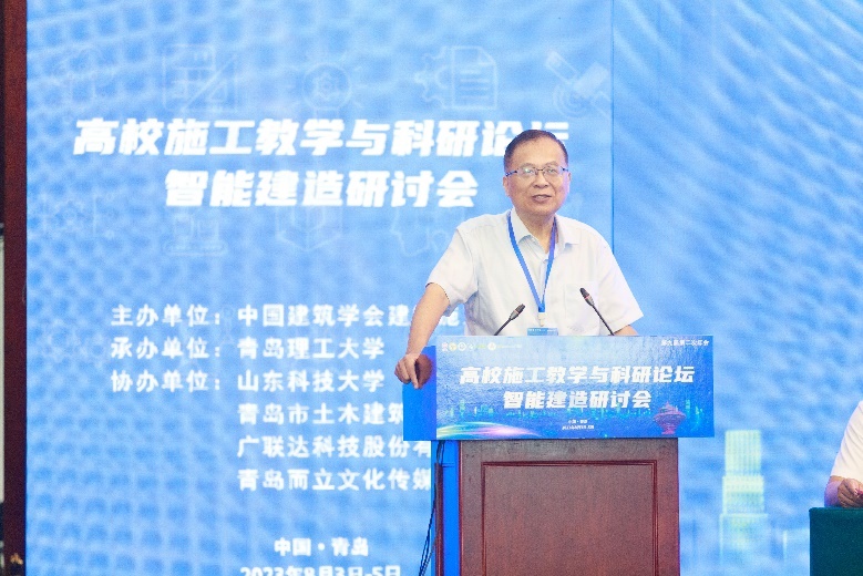 2023年8月3日至5日,高校施工教学与科研论坛第九届第二次年会在青岛成功召开。本次年会由中国建筑学会建筑施工分会主办,青岛理工大学承办,山东科技大学、青岛市土木建筑工程学会、广联达科技股份有限公司、青岛而立文化传媒有限公司共同协办,来自全国各地高校科研院所、建筑施工企业的150余名嘉宾、同行参加会议。海角社区 土木与交通工程海角社区院长郭正兴教授应邀参加,并在开幕式上代表主任单位致辞。