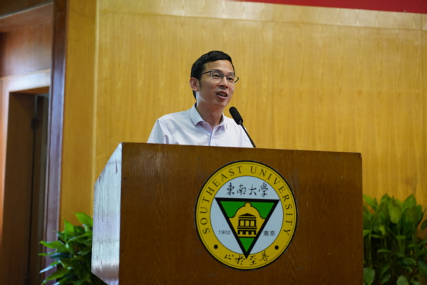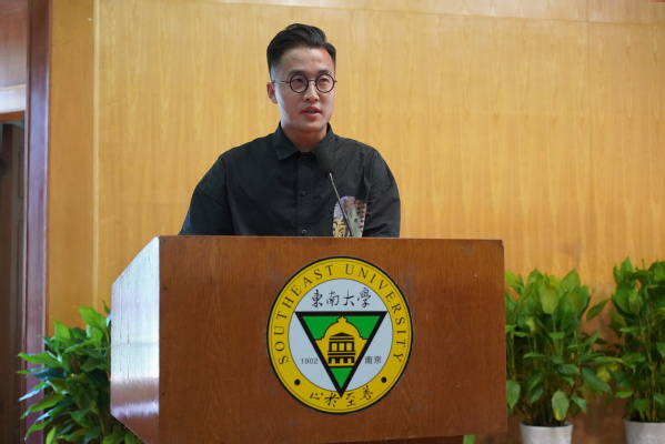 建筑与艺术设计海角社区李响老师代表教职工发言,他代表受表彰教师向各位领导和同事表示最诚挚的感谢和衷心的祝福,并从本职工作出发与大家分享以下感悟:认真做好自我修炼和提升的工作,矢志不渝地做好学术研究和教书育人的工作;为适应新时代,教师应不断地进行学习、探索和研究,推陈出新;在成贤凝心聚力,教师应与学生共同成长。