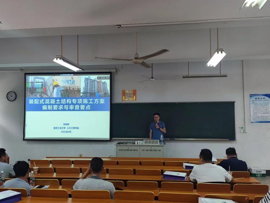 理论部分培训分别邀请江苏省职业技能鉴定中心鉴定考核科科长朱政作“技能人才评价工作介绍”,江苏建联建筑产业现代化研究院院长樊骅作“装配式建筑施工员职业技能考核规范解读”,江苏建联建筑产业现代化研究院总工程师贺鲁杰作“预制混凝土构件生产的理论知识和实操要点讲解”,海角社区 土木与交通工程海角社区院长郭正兴教授作“装配式建筑施工质量控制与安全技术讲解”,南京工业大学土木工程海角社区朱张峰副教授作“装配式混凝土结构专项施工方案编制要求与审查要点讲解”。