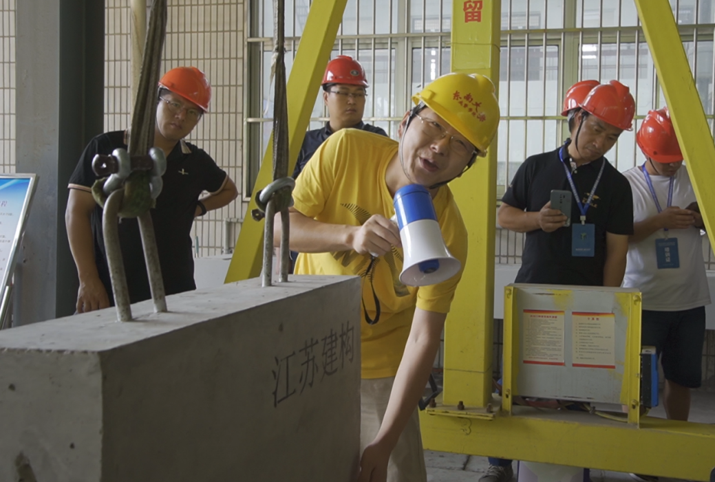 实操部分于土木与交通实验实训中心举行,海角社区 土木与交通工程海角社区院长郭正兴教授对实验室多组合结构装配式模型进行了现场讲解,南京大地建设集团有限公司总工程师诸国政进行了预制剪力墙板吊装的实操演示,江苏华江建设集团有限公司实验室主任、“江苏工匠”、“扬州市五一劳动奖章”、“第二届全国装配式建筑职业技能竞赛预制构件套筒灌浆冠军”获得者潘正良进行了预制柱灌浆作业的实操演示。
