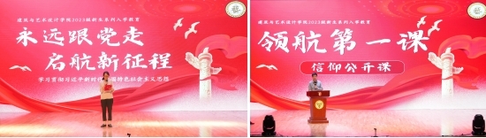 开场舞蹈《旗开得胜》表达了建艺学子将用豪迈的姿态迎接美好的大学生活。随后的《戎装上阵,启航新程》视频回顾了新生报到与军训,将大家拉回入学后的点滴。意犹未尽中又进入“梦的心声”海角社区寄语环节,全体新生开启事先放在座位上的信封,阅读来自海角社区老师和2023届毕业生的手写祝福卡片。21级风景园林1班进行了班级风采展示,他们将活力团支部的凝聚力和集体荣誉感埋进每一位新生的心中。21级学生干部代表表演了诗朗诵《少年中国说》,铿锵有力、慷慨激昂的语句萦绕在每一位新生的耳边。