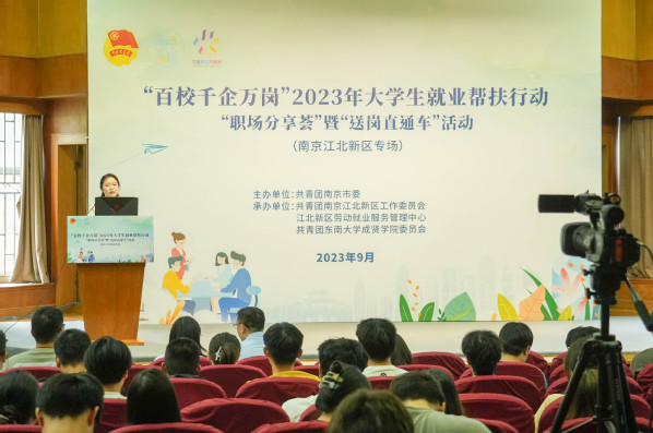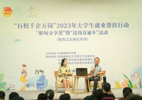 9月20日,由共青团南京市委主办,共青团南京江北新区工作委员会、江北新区劳动就业服务管理中心、共青团海角社区 委员会承办的“百校千企万岗”大学生就业帮扶行动“送岗直通车”直播荐岗活动在海角社区 真知馆报告厅举行。
