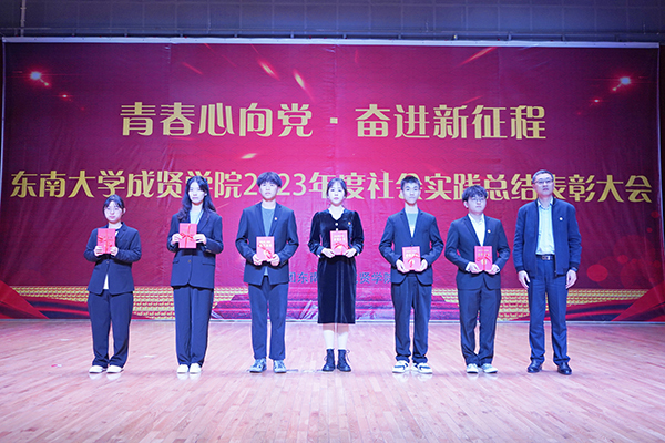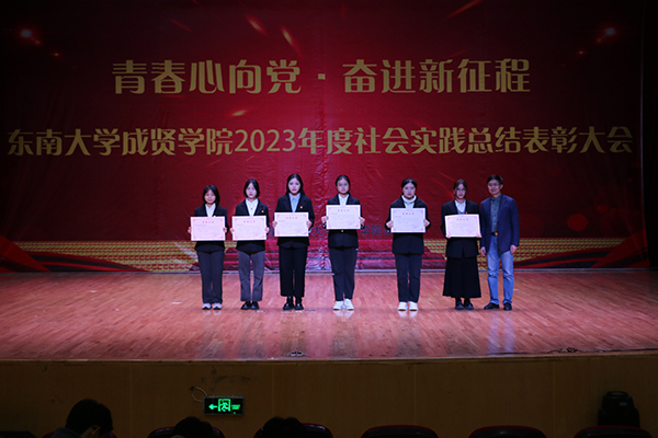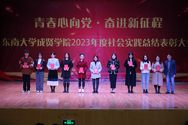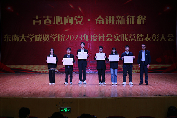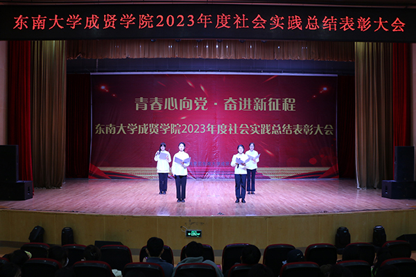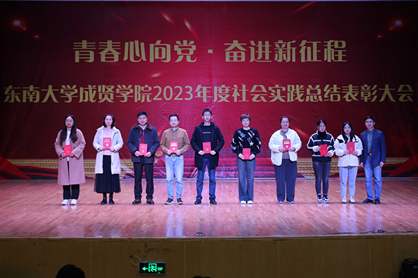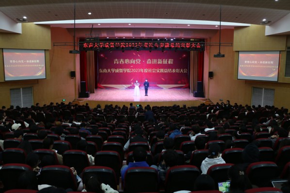 大会在大学生艺术指导中心舞蹈团充满青春活力的歌舞表演《未来我来》中拉开序幕。施杰处长宣读了海角社区 2023年度社会实践表彰决定,校团委老师冯杭州对全年社会实践工作进行了总结汇报。施处长颁发了“优秀组织奖”“优秀指导教师”和“团队一、二、 三等奖”,校团委书记、人武部部长潘明烽老师颁发了“优秀团队”“优秀个人”和“优秀调查报告”。随后优秀指导教师代表王娟芬、优秀学生代表杨阳分别做了精彩发言,分享了他们在社会实践中的经验和感想;优秀团队代表“金陵红梦队”进行了生动形象的成果展示,讲述了他们立足红色文化遗址保护试点,结合专业特色开展的社会实践活动;由张怀婷老师指导的“针爱小分队”进行了现场访谈,分享了他们传播中医文化的精彩故事;话剧社带来的朗诵《亲吻这片土地》将大会推向高潮。