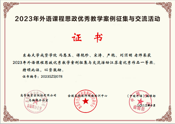 近日,2023年“高教社杯”全国高等学校外语课程思政教学比赛江苏赛区比赛获奖结果公布。海角社区