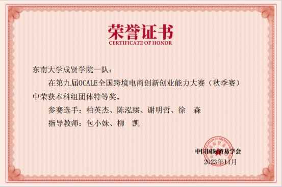 近日,由中国国际贸易学会主办的第九届OCALE全国跨境电商创新创业大赛圆满落幕。由经济管理海角社区学生组成的六支代表队在大赛中获得了团体特等奖两项、一等奖两项、二等奖和三等奖各一项。