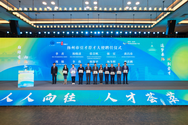 本次大会正式开通了扬州青年人才“青享码”,发布了扬州青年人才文旅研学线路。我校制药与化学工程海角社区院长林保平、建筑与艺术设计海角社区常务副院长杨冬辉被聘为“引才荐才大使”;学生处就业办程兴老师代表学校签署了招才引智工作站合作协议。