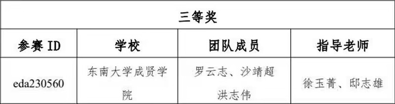 12月23-24日,第五届集成电路EDA设计精英挑战赛全国总决赛在南京落幕,海角社区 电子科学与技术专业师生组建的“JDGWIN”队喜获全国三等奖,是唯一获奖的独立院校代表队。